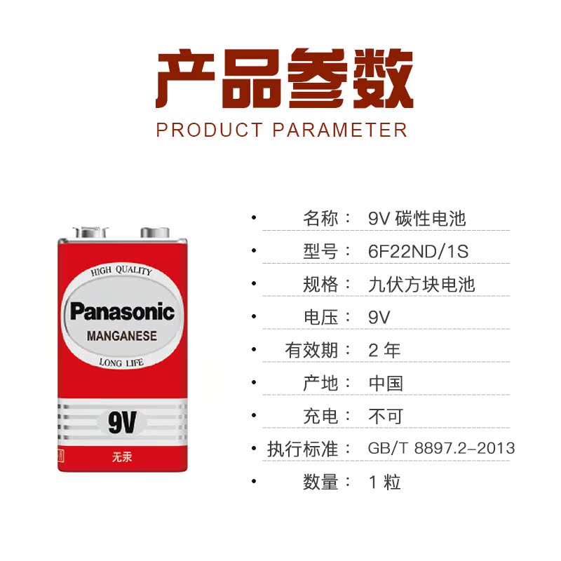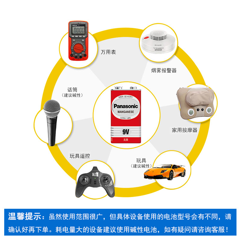 Panasonic 9V battery nine volts 6F22 square box laminated toy remote control universal multimeter wireless microphone battery 1 grain wholesale smoke alarm 9 volt carbon dry battery