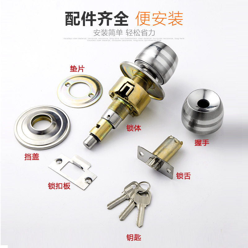 Spherical door lock household room bedroom toilet common type lock old door ball type stainless steel round lock