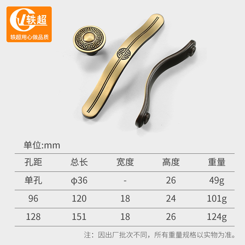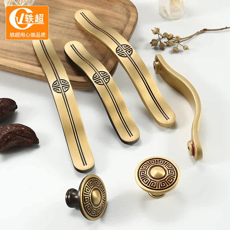 Archaise ark door handle of new Chinese style chest tea table drawer handle of cabinet door handle of cabinet of pure copper northern Europe
