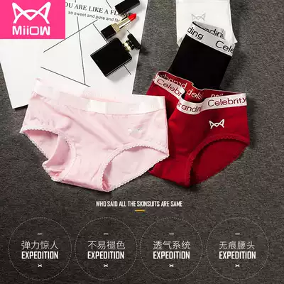 Cat man underwear female cotton mid-waist sexy lace edge incognito girl Japanese Year of Life Year of the Ox ladies briefs