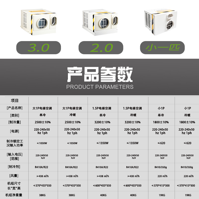 Elevator dedicated air conditioner 1 horse Single cold 1 5p cold and warm water without drip all-in-one car car roof air conditioner passenger elevator freight elevator