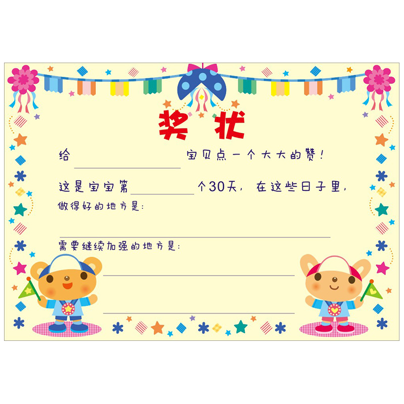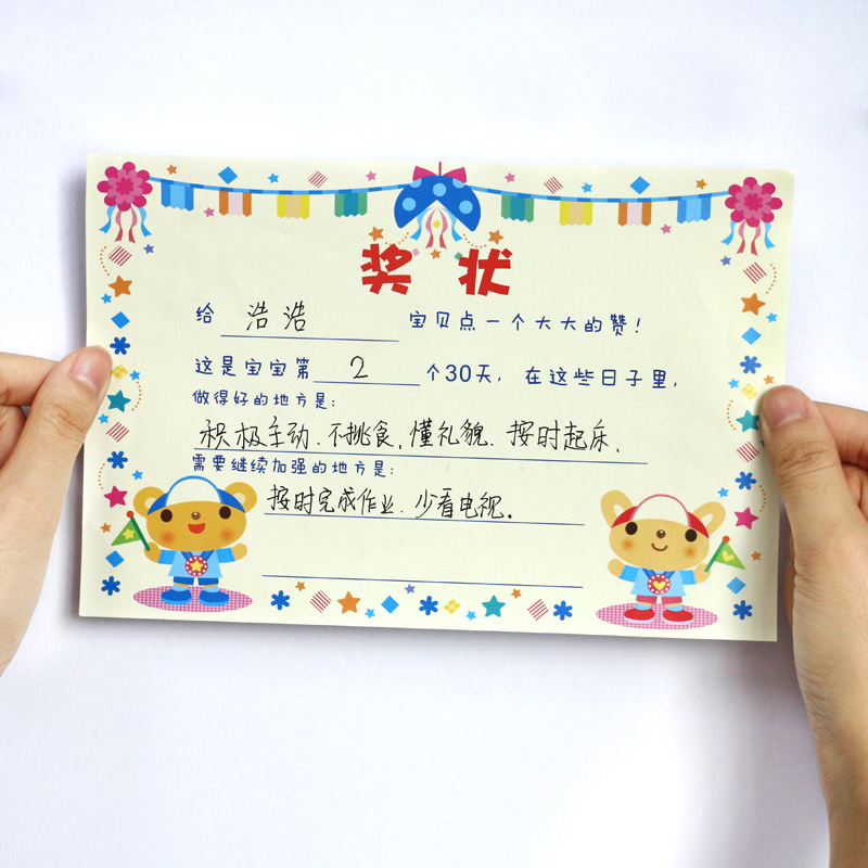 A4 Cartoon bear (pack of 12) Reward card (set of 7) Good child medal (single) Box packaging Good child medal (single) Reward flip card (set of 20