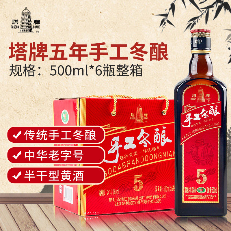 Tasting Shaoxing yellow wine for five years handmade winter brewing 500ml * 6 bottles of whole box plus rice flower engraving wine Zhengzong Sauxing old wine