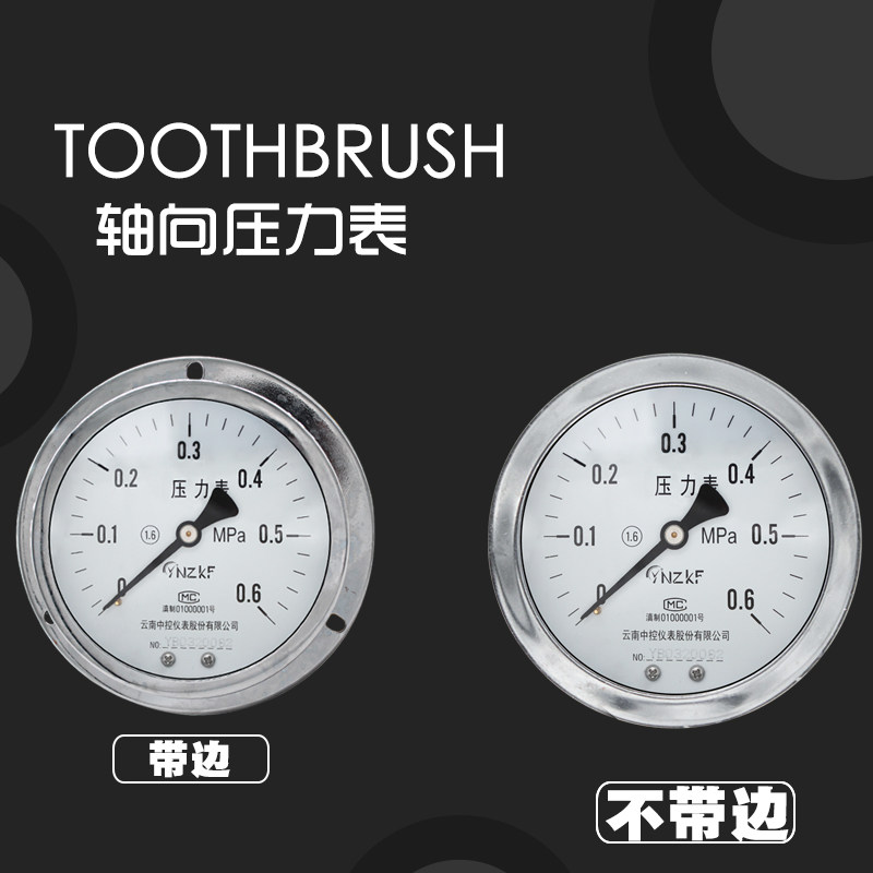 YN60ZT shock-resistant pressure gauge shaft stainless steel to hydraulic oil pressure gauge vacuum negative pressure gauge 1 6 2 5 6 10