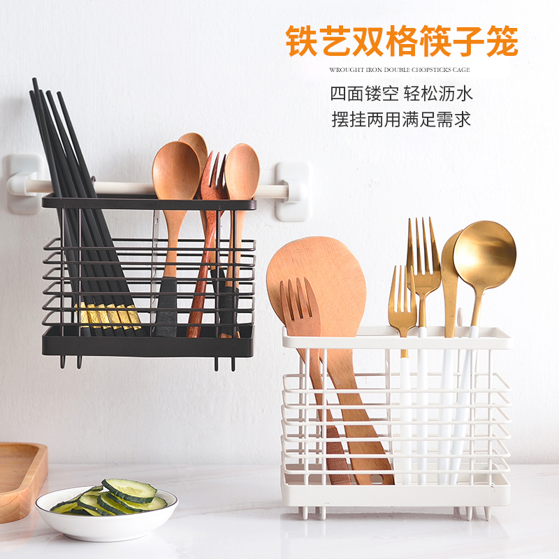 Kitchen chopsticks storage drainage chopstick cage household wall hanging chopsticks barrel shelf spoon storage box chopstick holder