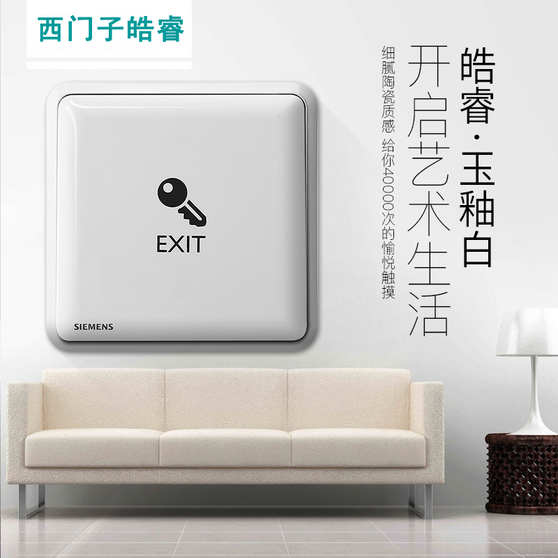 Siemens Haorui jade glaze white emergency access control switch glass door in and out door button panel self-reset 86 type dark
