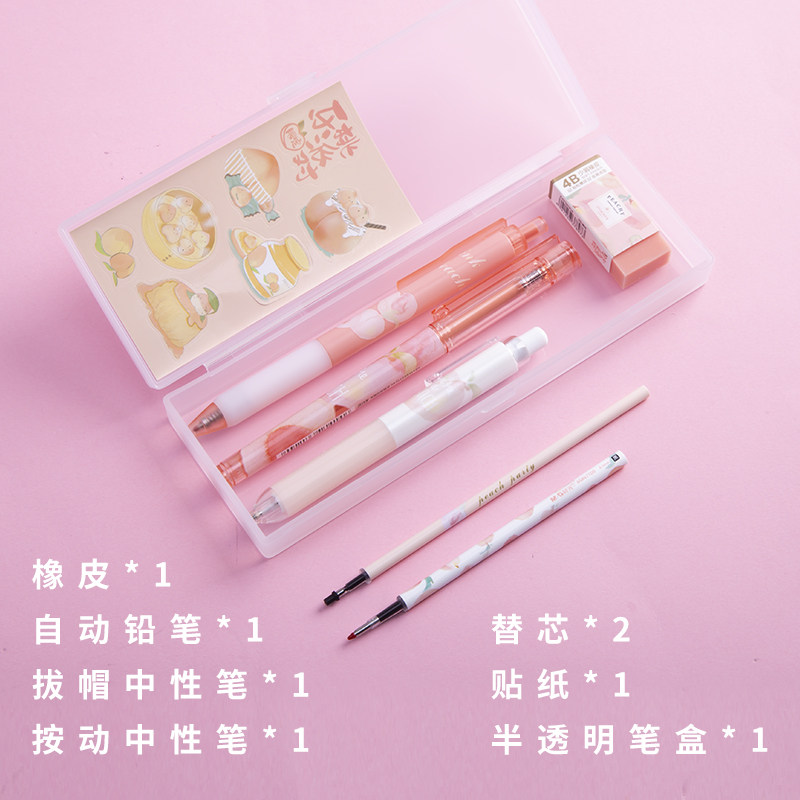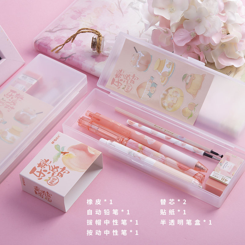 Morning light stationery limited Peach party PP pen box stationery set HAGP1121 black 0 5mm mechanical pencil straight liquid ball pen signature pen girl small fresh gel pen set