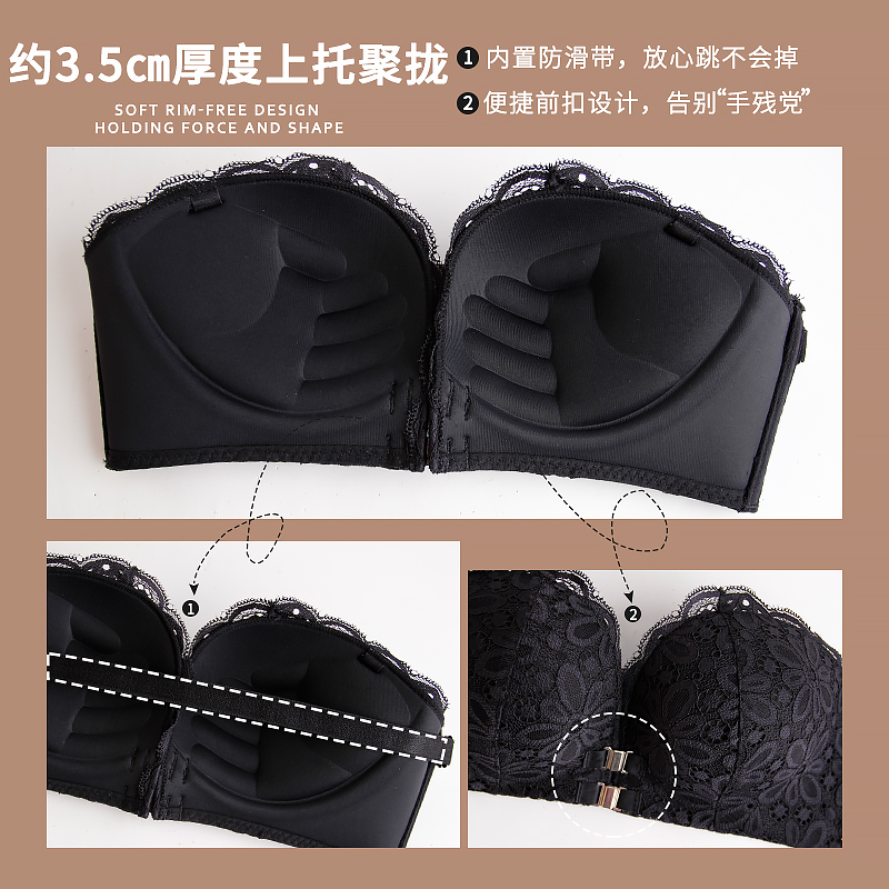 Front buckle strapless underwear women's non-slip gathered strapless bra small chest thickened dress on the beauty back summer sexy