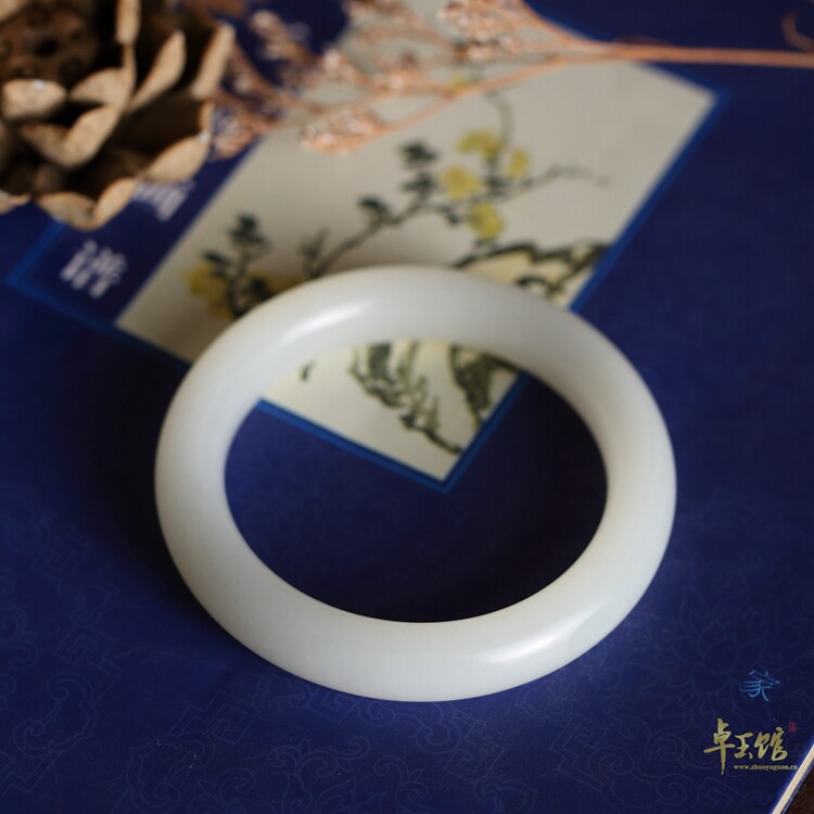 (52 5mm vegetarian bracelets) Xinjiang and Tian Yuseed material level white round bar bracelet special price Zhuoyu Museum Li Zhuoyu engraving