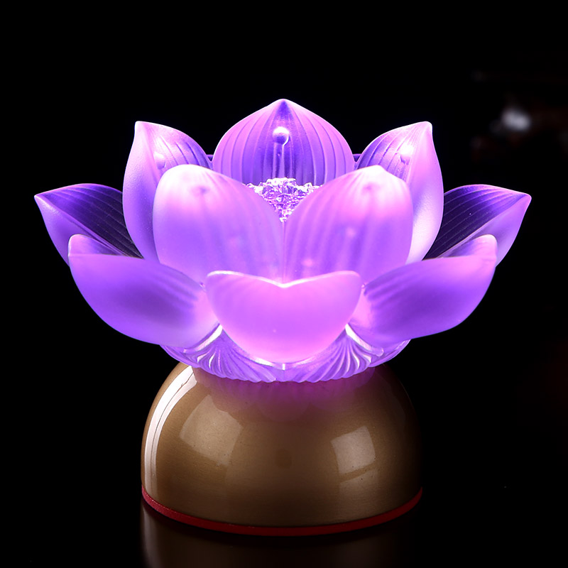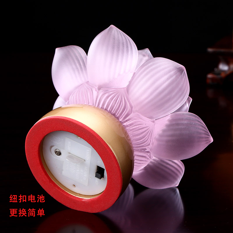 Seven-colored glass battery lotus lamp in front of the Buddha Buddha for the lamp Home for the Buddha lamp LED pure copper Changming lamp tribute lamp