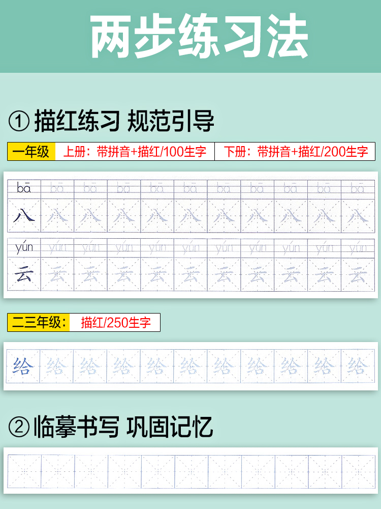 Deli first grade practice posts Copybook Daily practice primary and secondary school children 1-2 grades up and down regular books 2-3 grades Hard pen calligraphy practice books Copy people's teaching version Synchronous writing posts