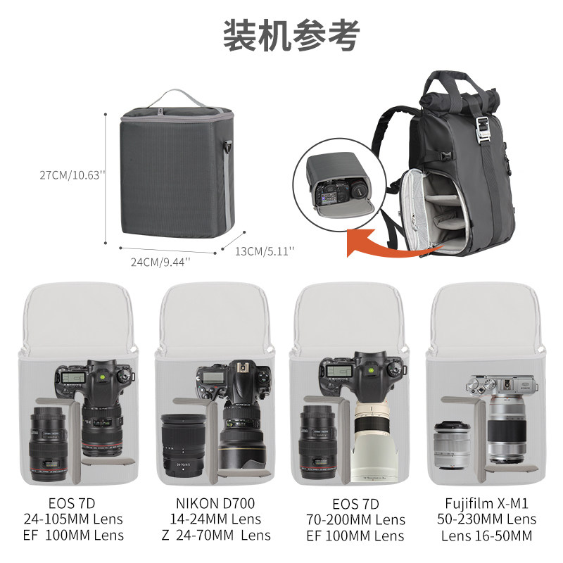 Baixin Travel Digital SLR Camera Backpack Outdoor Waterproof Professional Multifunctional Micro Single Quick Take Photo Bag suitable for Canon Nikon Sony large capacity side open men's and women's travel computers