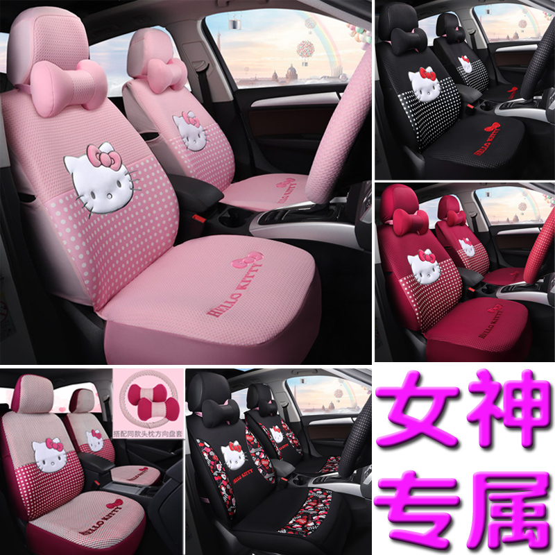 kitty net red car seat cover Cartoon female cushion Cute seat cushion four seasons universal full surround KT cat seat cover