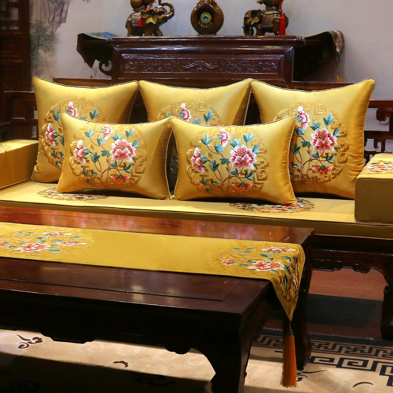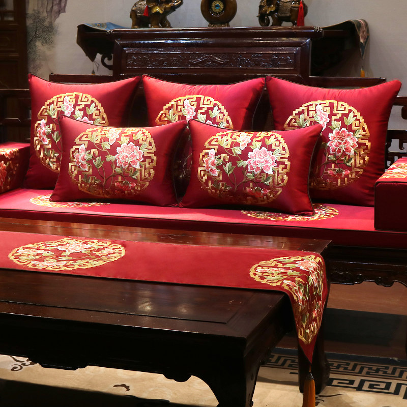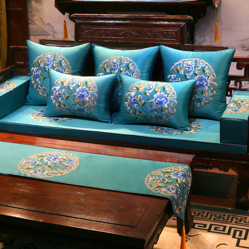 Mahogany sofa cushion new Chinese embroidery classical solid wood furniture cushion non-slip custom Luohan mattress five-piece set