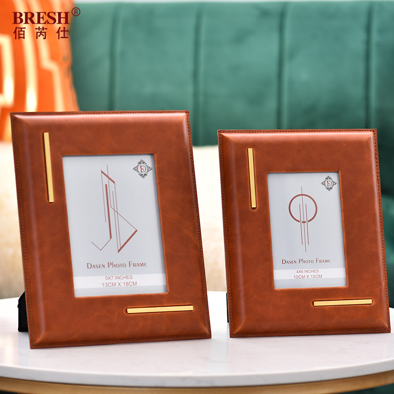 Light luxury creative leather photo frame 6 inch 7 inch modern simple photo decoration model room ornaments home furnishings
