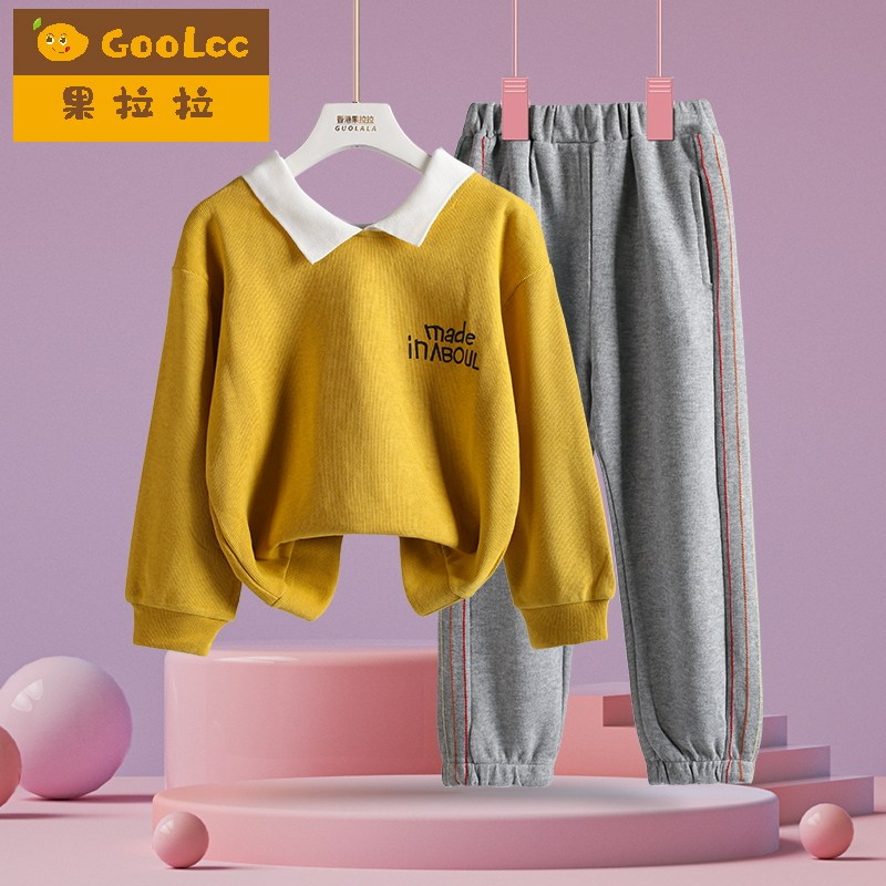 Girl Suit Trendy Foreign Pie 2022 Spring Dress New Children Suit Two Sets CUHK Child Girl Little Girl Autumn Clothes