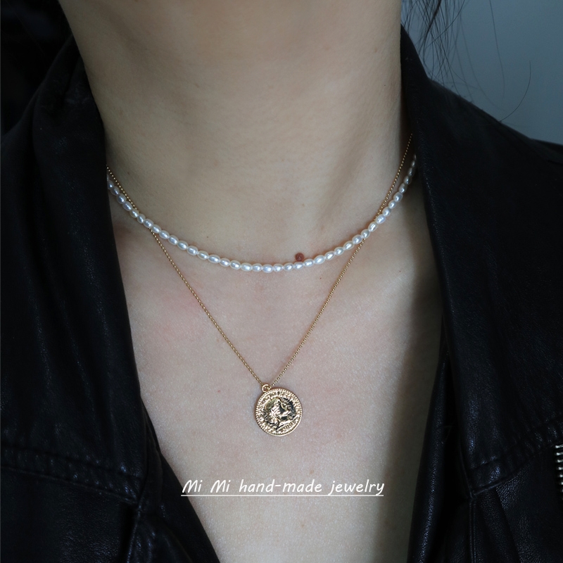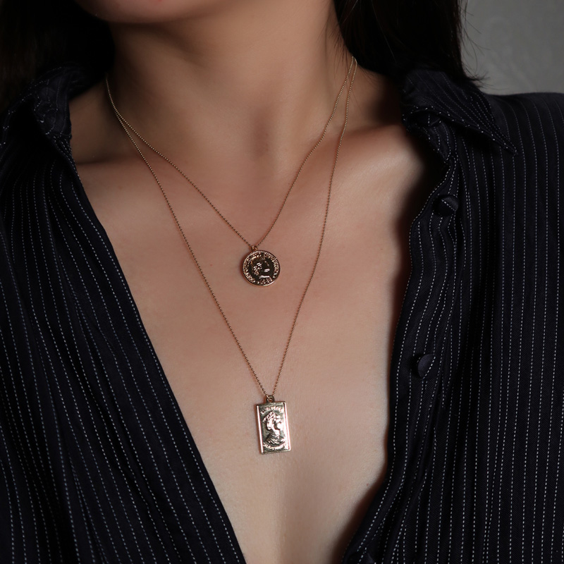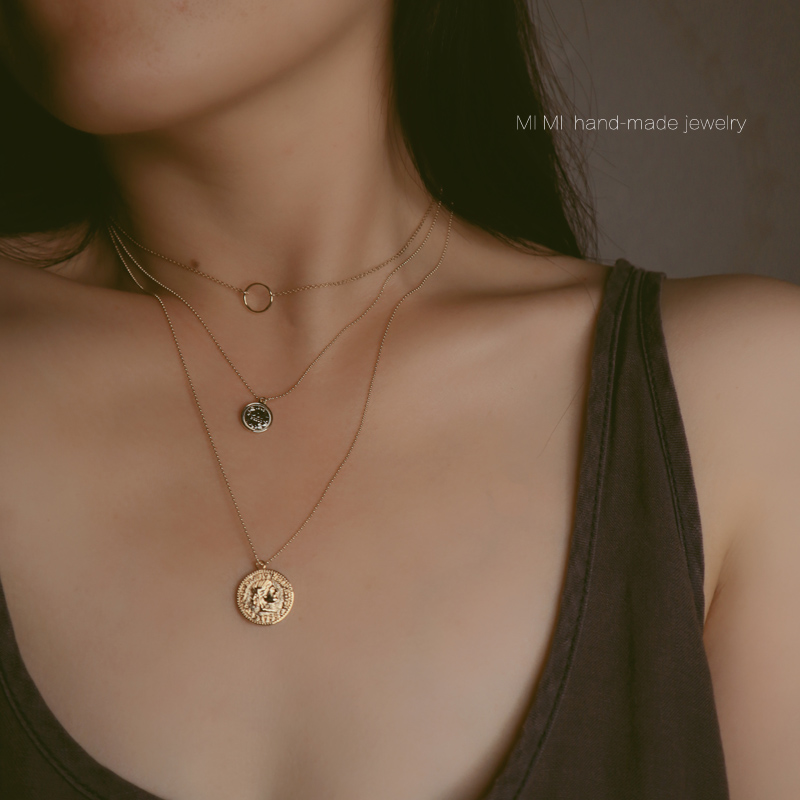 Retro European and American imported 14K note Gold round card coin necklace does not fade ball chain gold coin Queen choker