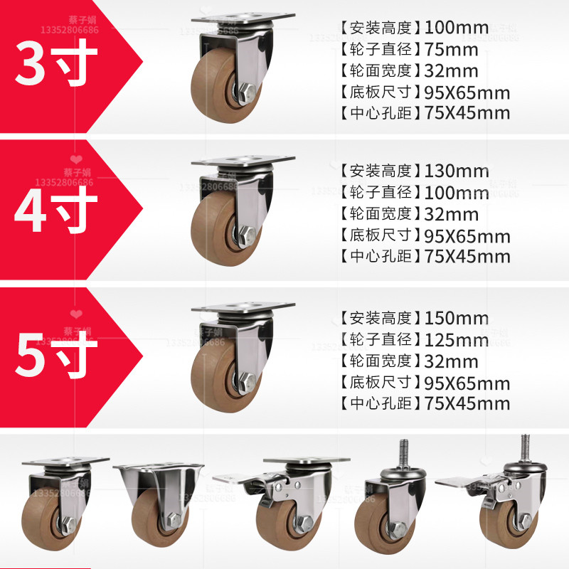 3 inch single wheel excluding bracket 4 inch single wheel does not contain bracket 5 inch single wheel No bracket 3 inch directional wheel 3 inch wheel 3 inch brake wheel 4 inch directional wheel 4 inch wheel 4 inch brake wheel 5 inch