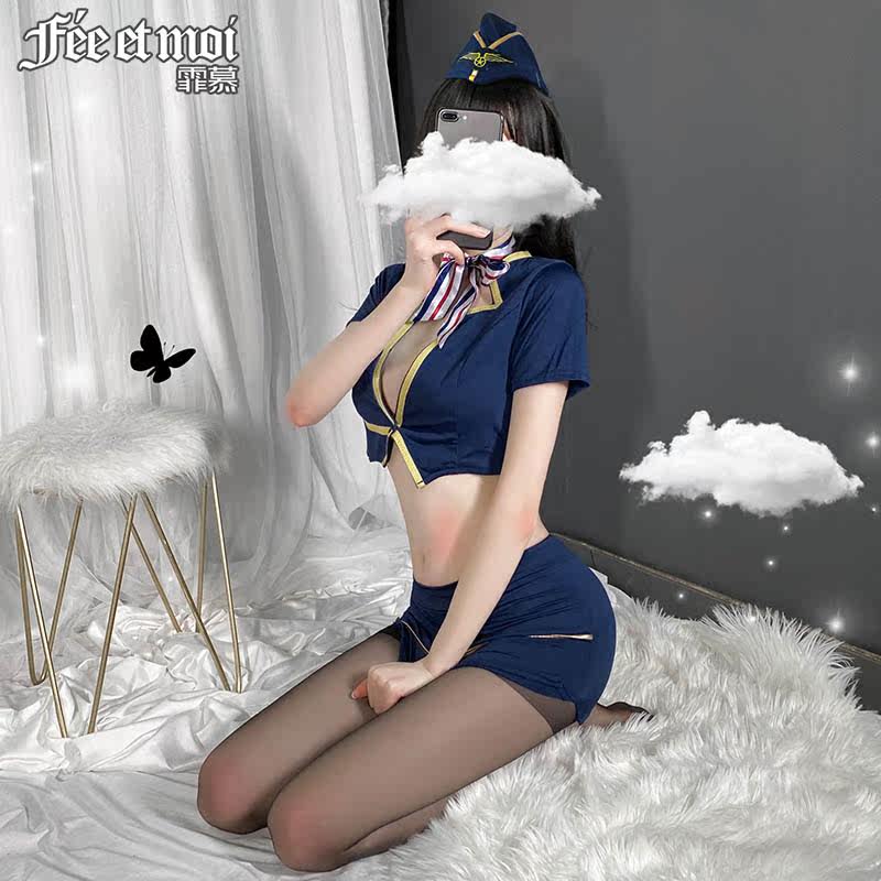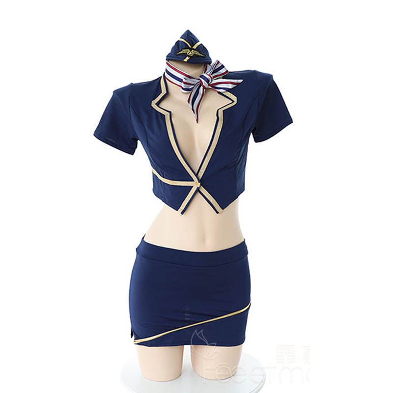 Flight Attendant Uniform Temptation deep V Tight Wrap Hip Short Skirt Foot Bath Technician Free of Passion Suit Erotic Underwear 7054