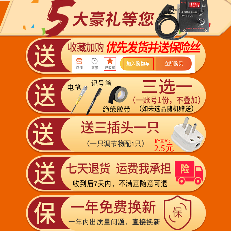 High power 220V exhaust fan fan blower governor angle grinder stepless variable speed switch voltage regulating electric furnace thermostat