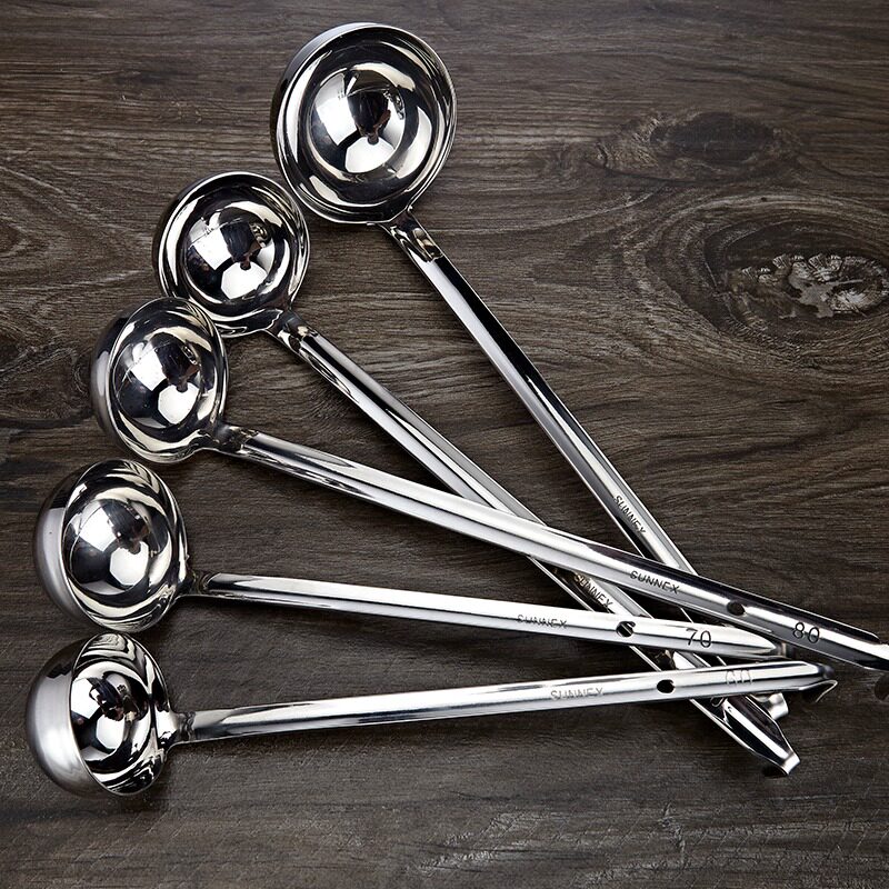 Commercial Stainless Steel Long Handle Dosing Spoon With Hook Soup Spoon Gram number Juice Shell Suit Fruit Meat Sauce Spoon Milk Tea Shop