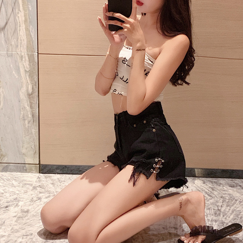 Ultra-high waist black denim shorts women's summer thin hot girls wide-legged loose a-line pants net red thin hot pants