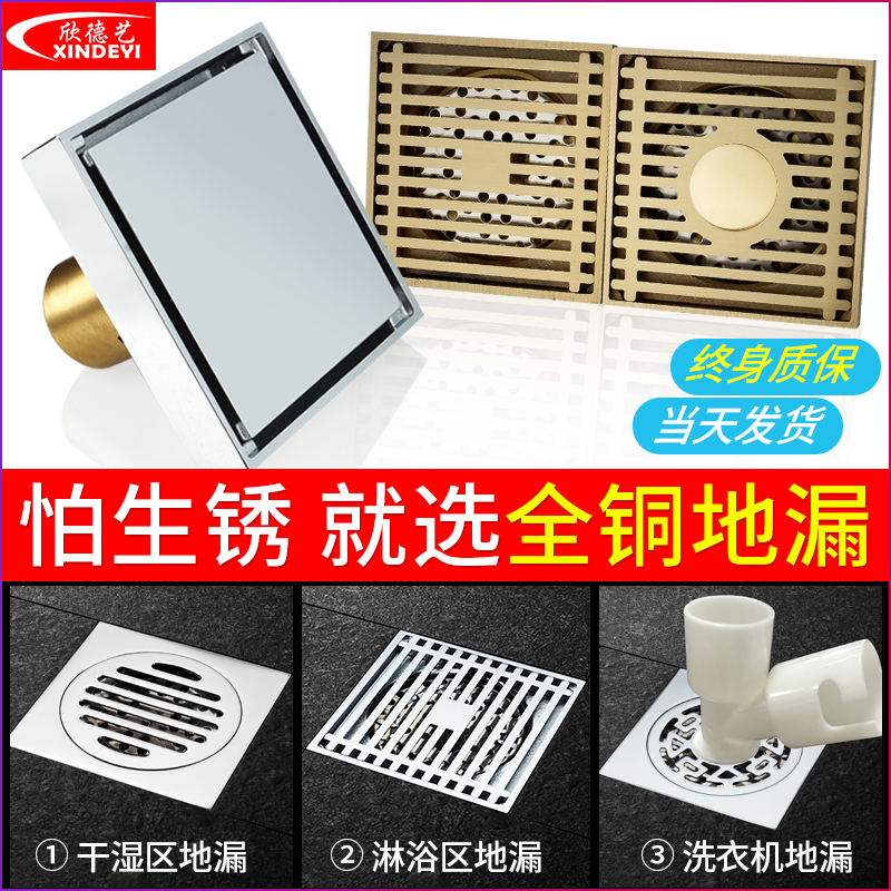 All copper deodorant floor drain dressing room floor drain shower room bathroom floor drain core sewer three-way floor drain cover deodorant