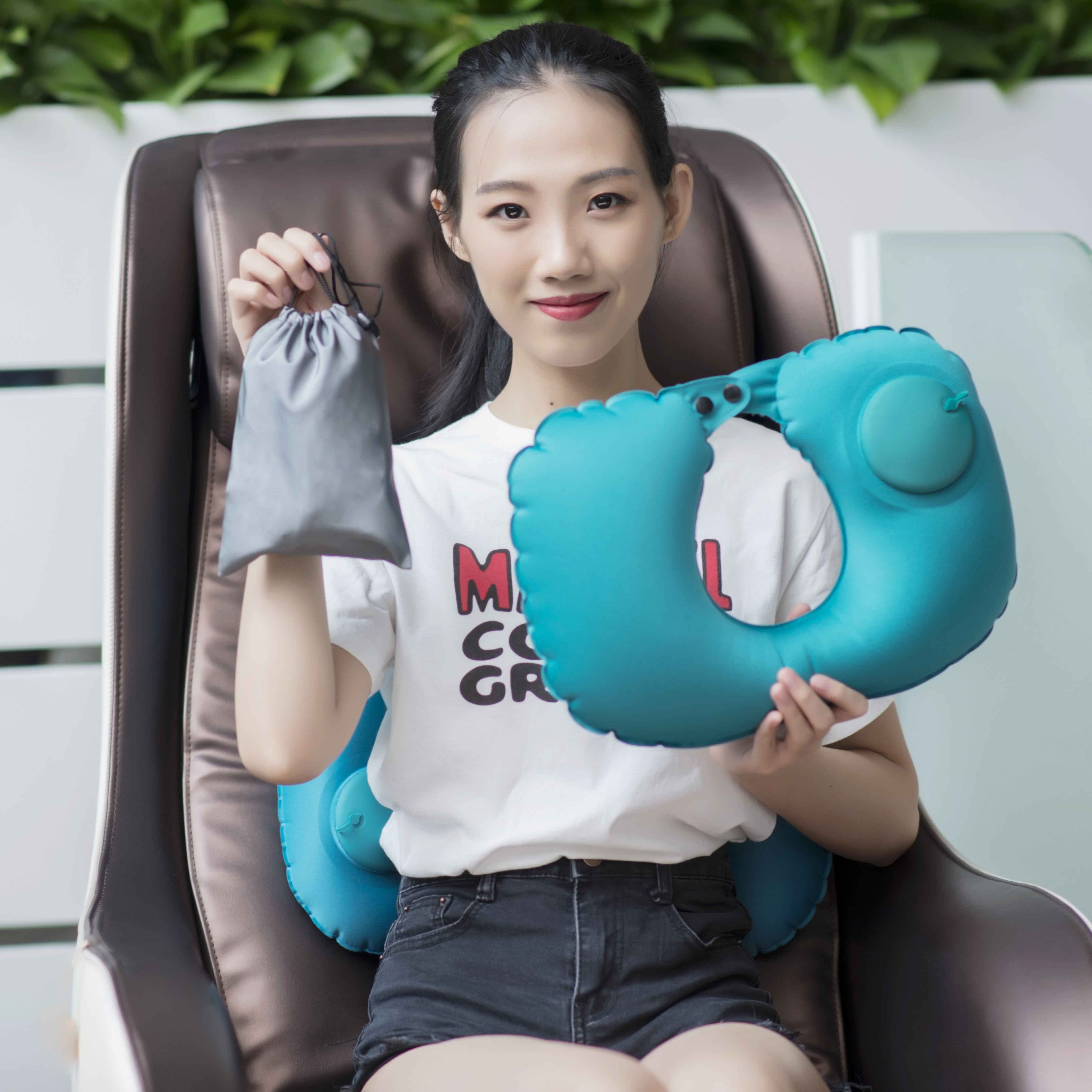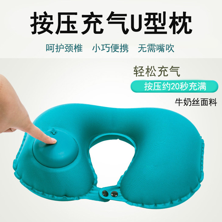 Travel push type inflatable u-shaped pillow car plane high-speed rail nap inflatable folding portable blow neck pillow summer
