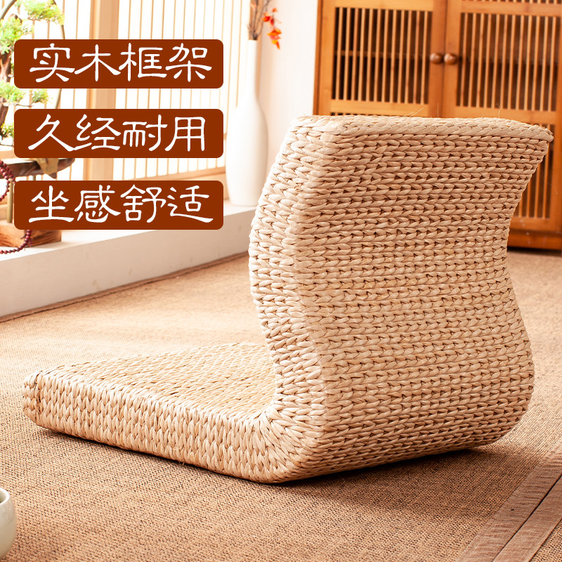 Simple straw tatami bay window chair Balcony floor Legless backrest chair Living room and room chair Lazy chair