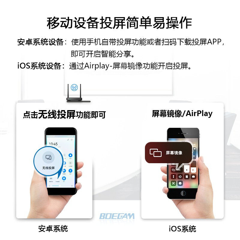 BOEGAM Baojiang R001 Wireless Tongscreen ios Android mobile phone Computer pitching screen projection gateway One-key-cast screen