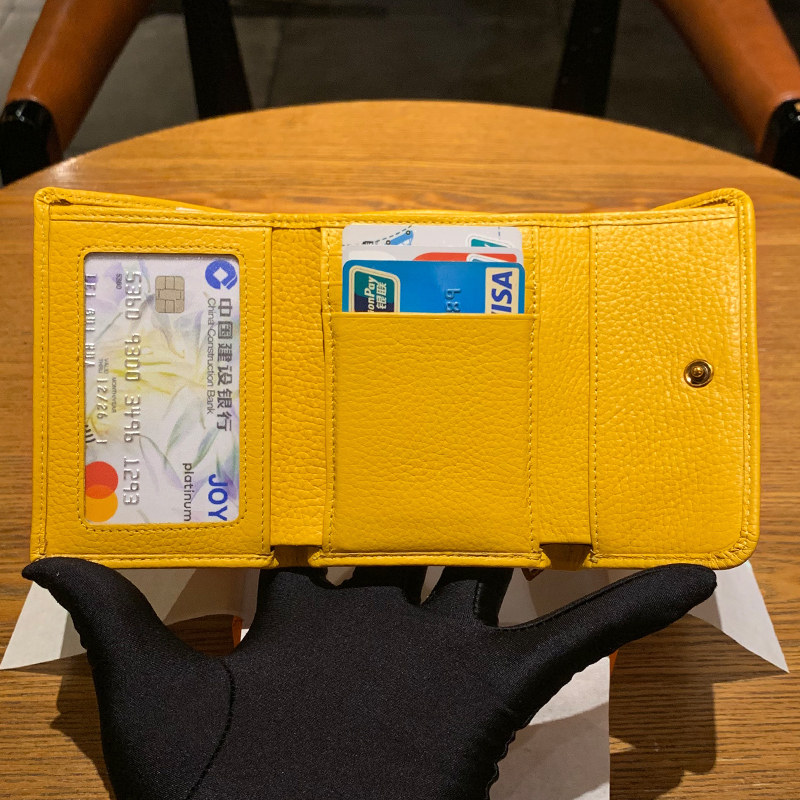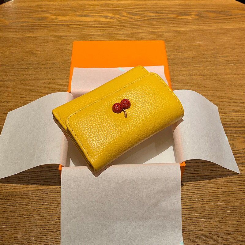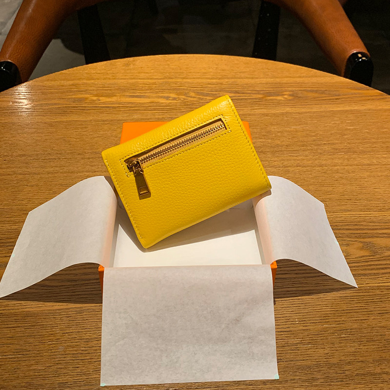 Yellow wallet Merchants Short money Three Fold Head Layer Cow Leather Han Version Cute Folded Genuine Leather Money Clip 2022 New Little