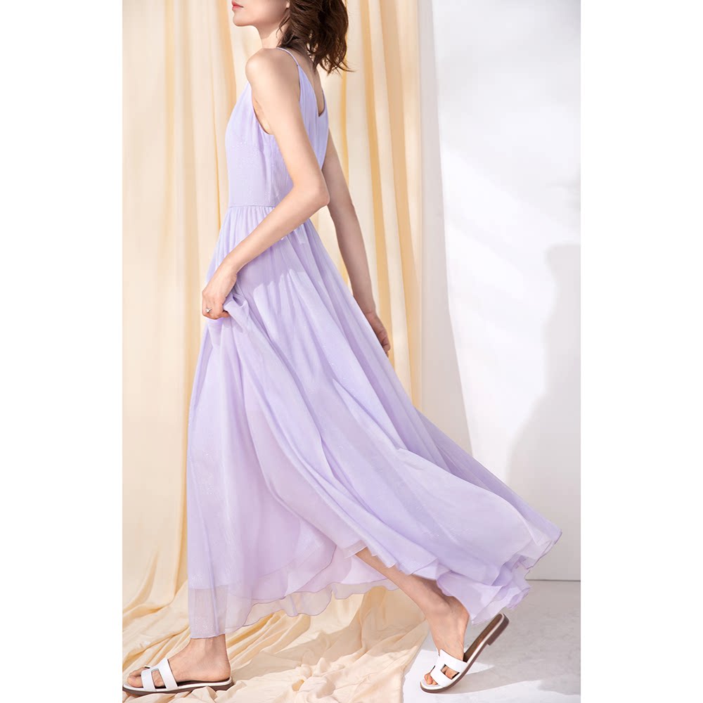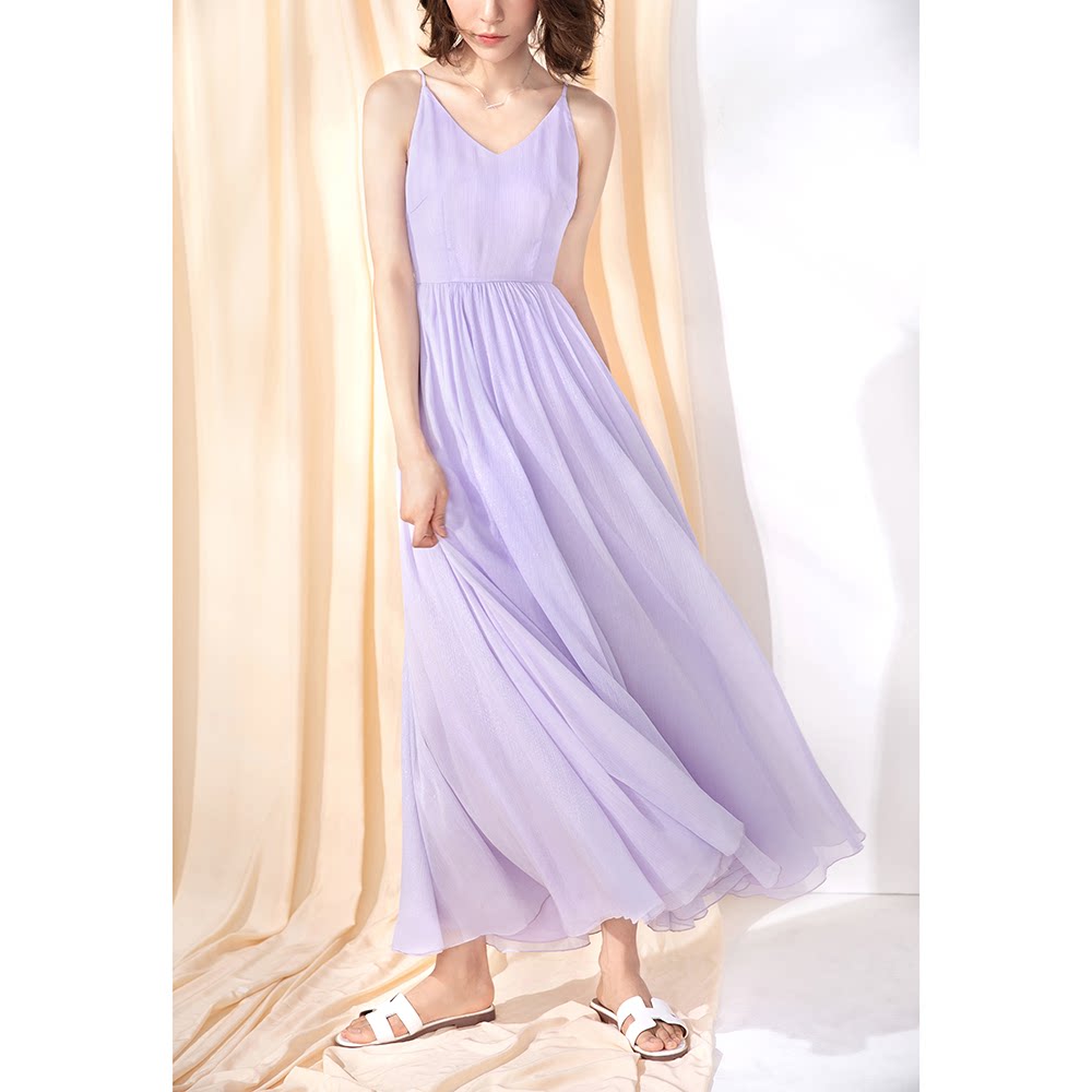 Princess Purple Harnesses Foreign Dress 2022 New Summer Cashew Slim Temperament Woman Design Dry Little Crowned Snowspun Long Dress