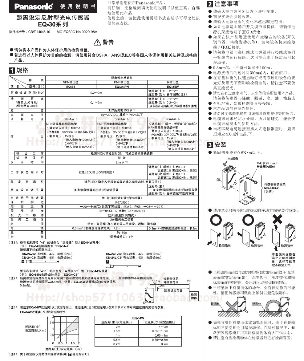 Original Panasonic SUNX reflective long distance photoelectric switch sensor EQ-34 EQ-34-PN EQ-34-PN-