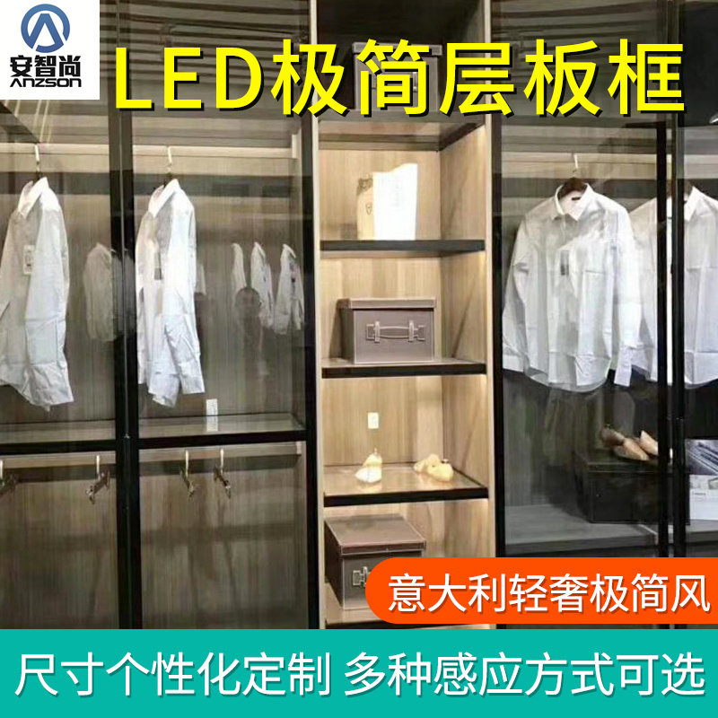 Wine Cabinet Glass Door Black Aluminum Alloy With Lamp Glass Wine Cabinet Laminate Lamp Extremely Simple Glass Frame Inductive Bulkhead Lamp-Taobao