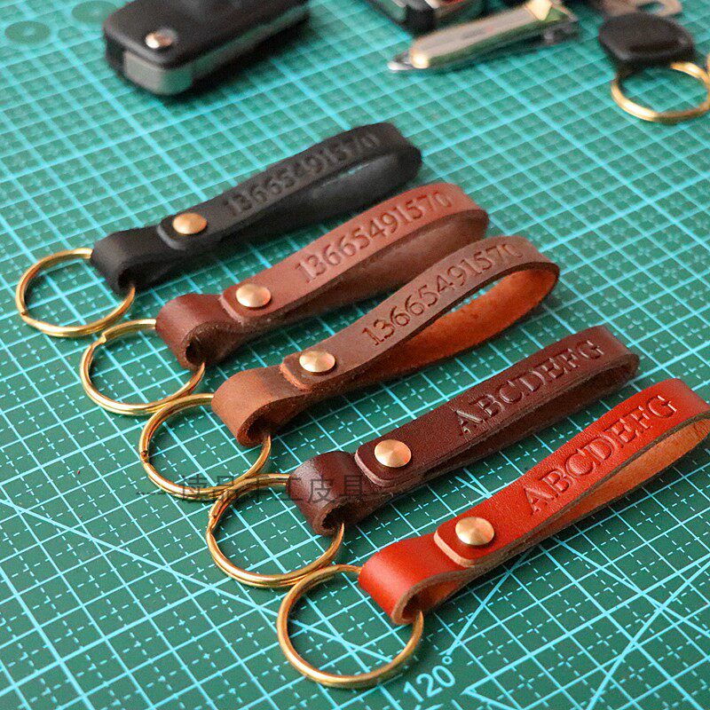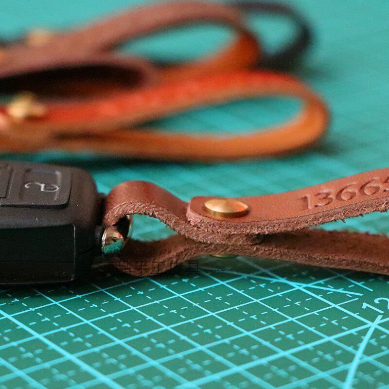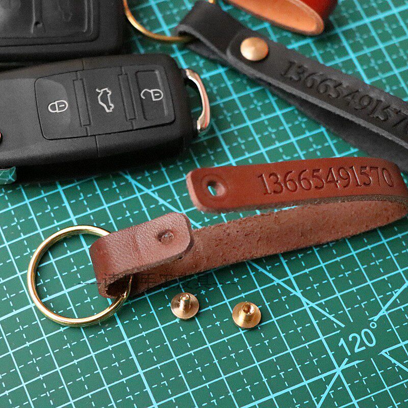 Customized head-layer pure cow-skin car keybuckle screw can be removed with inscriptible phone number anti-loss reduction key ring