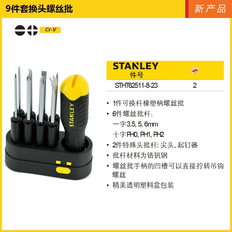 STANLEY Stanley 9-piece set head-changing screwdriver cross-word household repair STHT62511-8-23