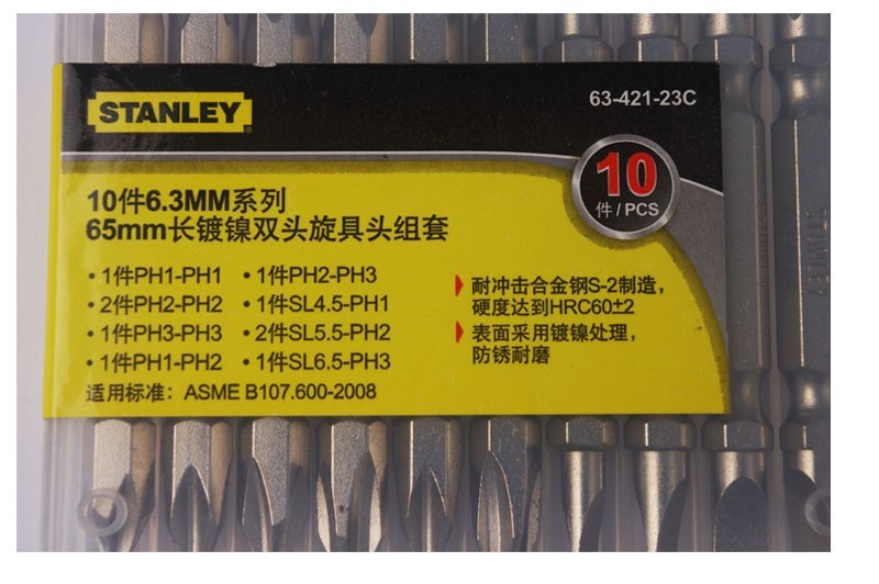 Stanley 10 pieces 6 3MM series 65mm long nickel-plated double head screwdriver head set 63-421-23C