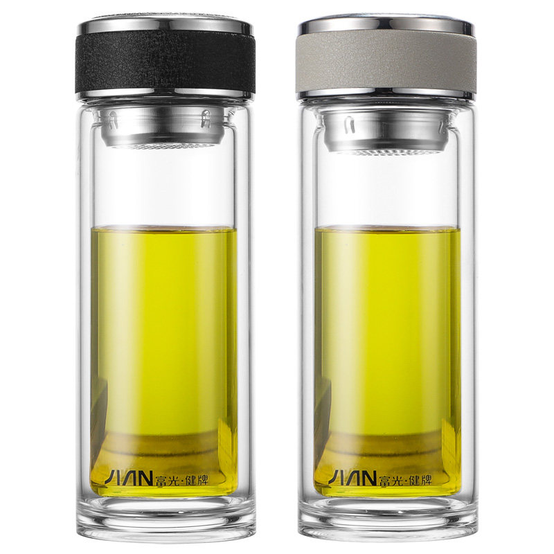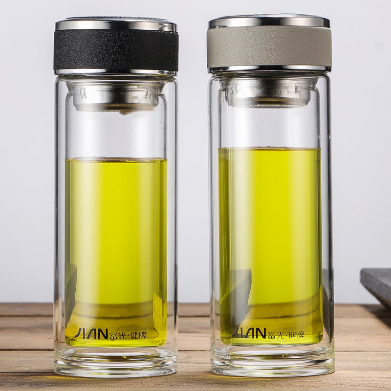 Fuguang glass cup large capacity double layer tea cup portable male and female vehicular glass water glass for home with hand mug