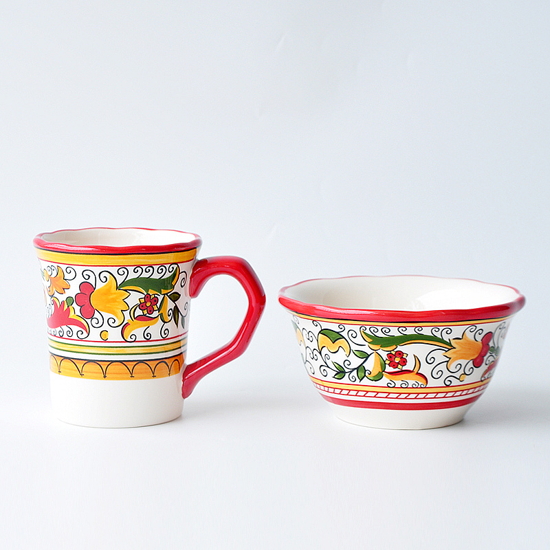 Forest Bears Exit Spain Ceramics Pure Hand-painted Floral Pattern Glazed Down Color Bowl Mark Cup Bohemian