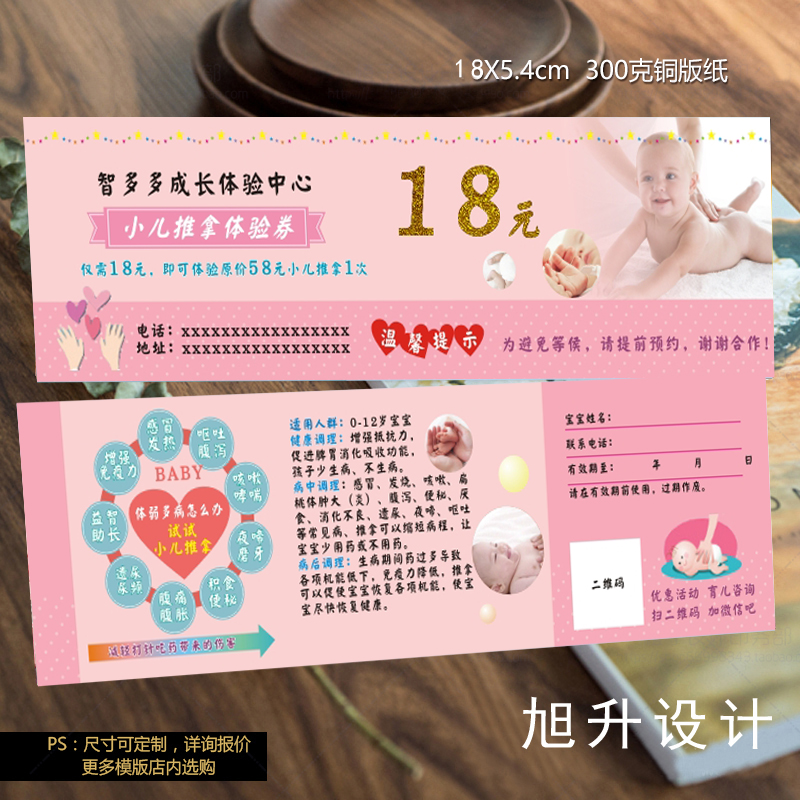 Children massage free experience voucher design Children's conditioning discount card printing credit custom made voucher