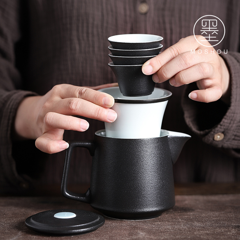 Inkun - guard a pot of four cups of travel small cans of tea set with outdoor portable ceramic kung fu teapot red glaze