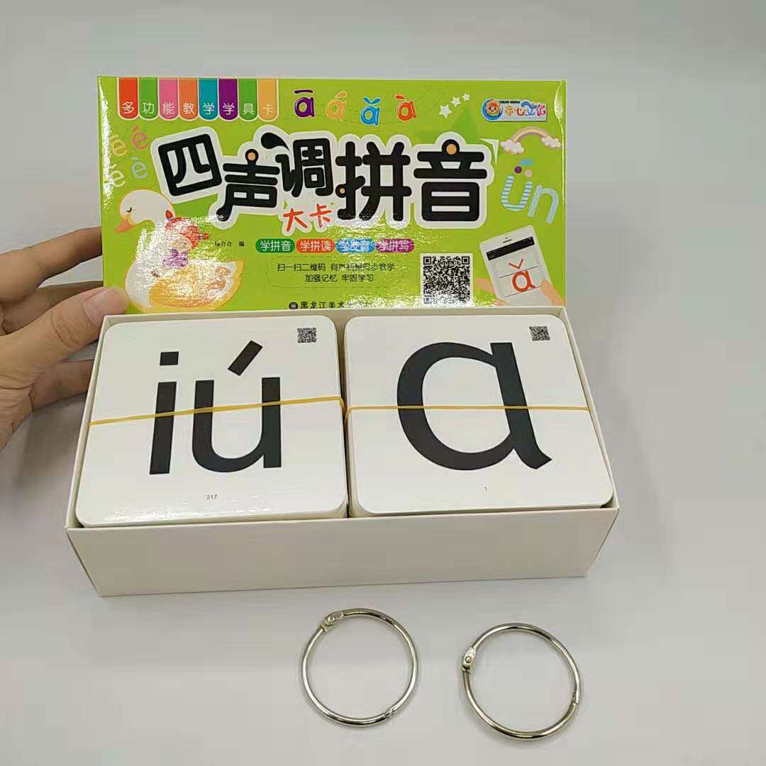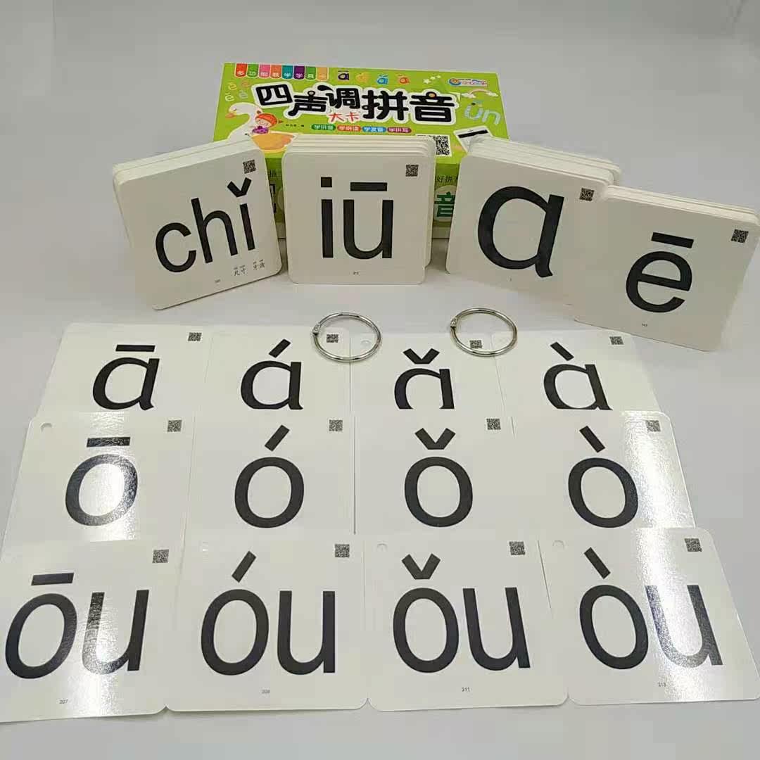 Four-tone pinyin without picture pinyin scanning code and reading multi-functional pinyin film thickened card elementary school students initial consonant vowel