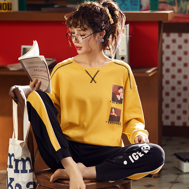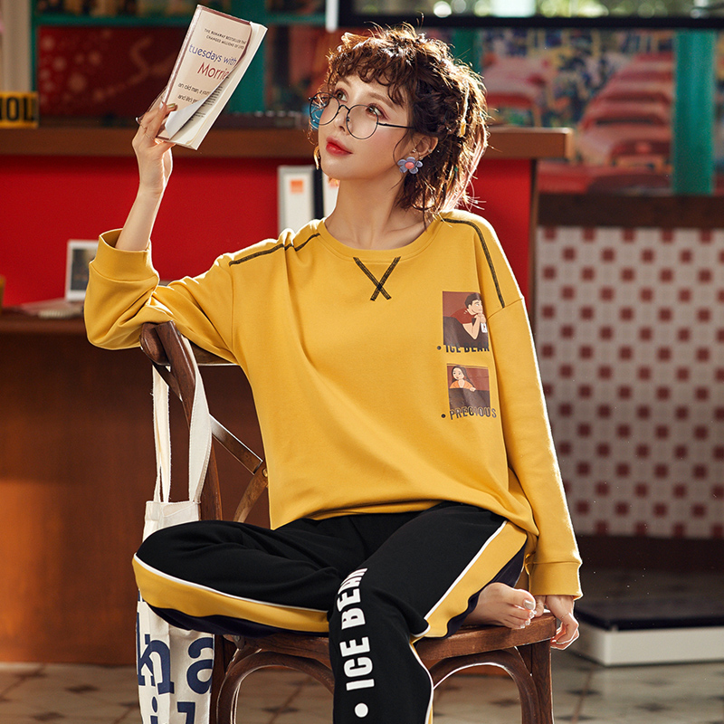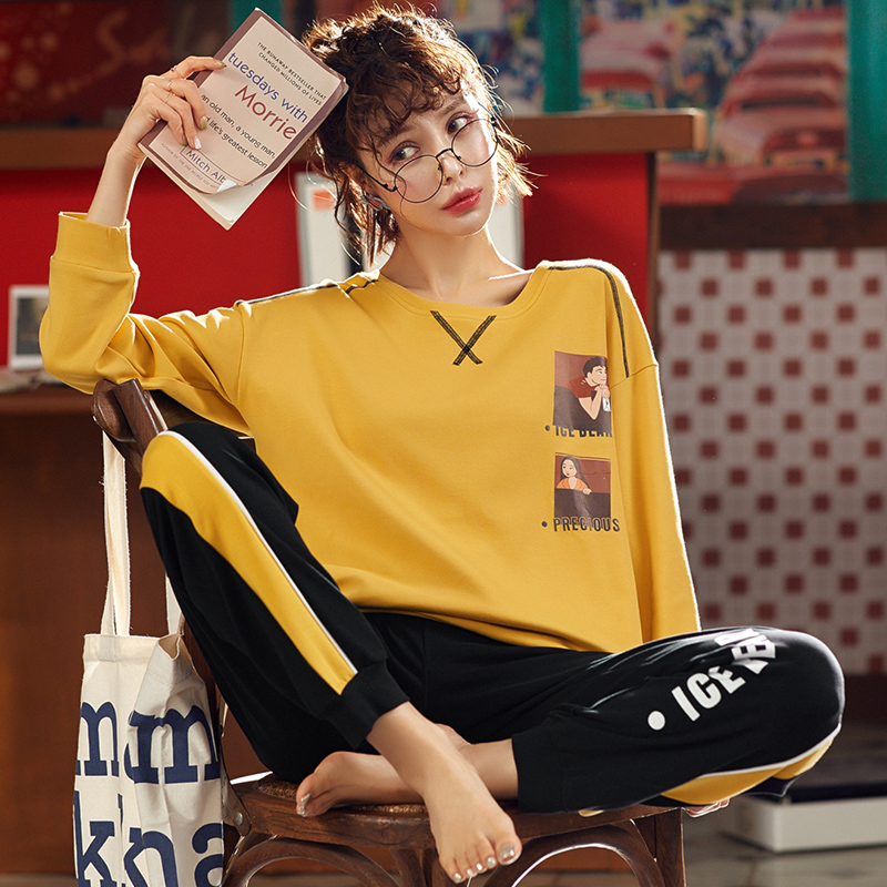 Pajamas women's spring and autumn long-sleeved cotton cute cotton autumn home clothes two-piece suit can be worn outside cotton fashion