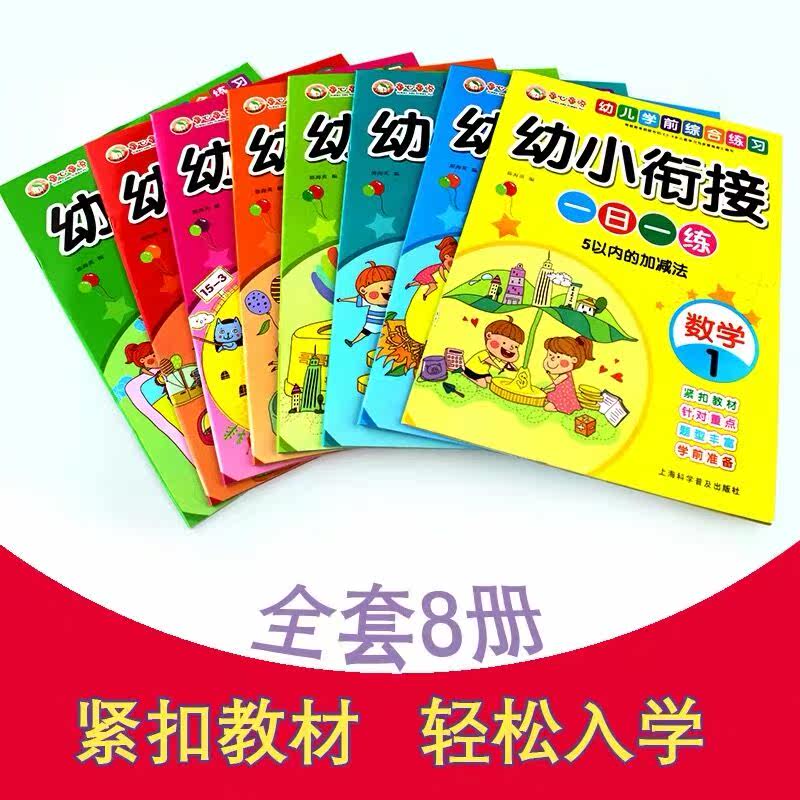 Young and small convergence 1st Practicing Preschool Integration Teaching Materials Kindergarten Language Math Pinyin Plus and subtraction restudy book