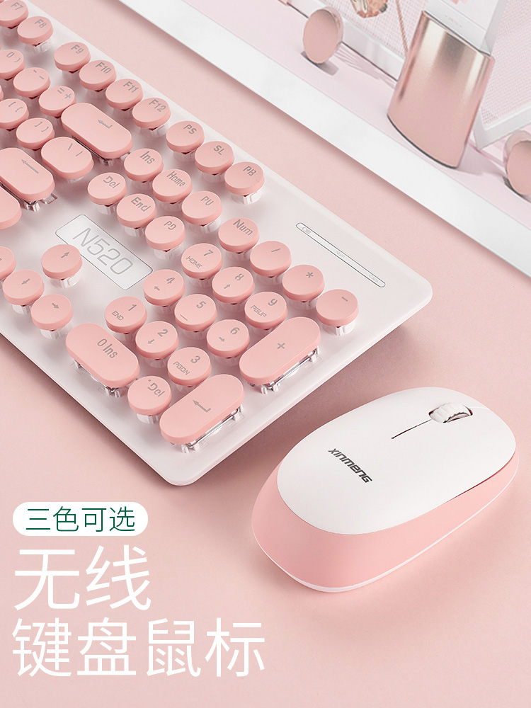 New Franchise Girl Hearts Wireless Keyboard Slimy Set Game Office Home Light Thin Retro Punk Girls Cute Pink Notebook Desktop Computer External Circle Key White
