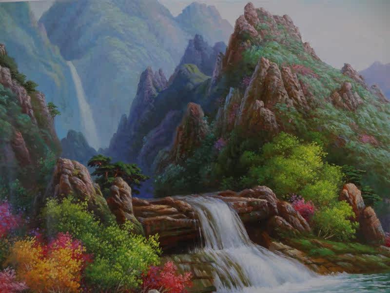 Antique Collection Boutique North Korea Landscape Landscape Old Cloth Oil Painting Original Painting with a name