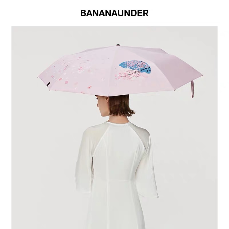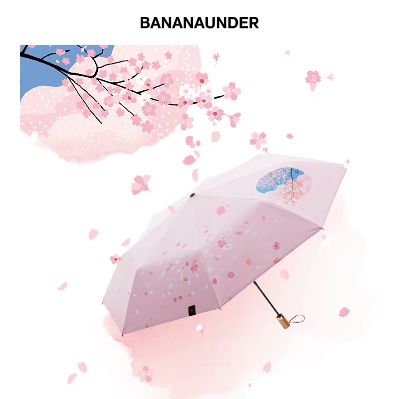 Banana cherry blossom small black umbrella small fresh sunscreen black plastic sunshade sunshade sunshade female focus anti-UV discoloration umbrella