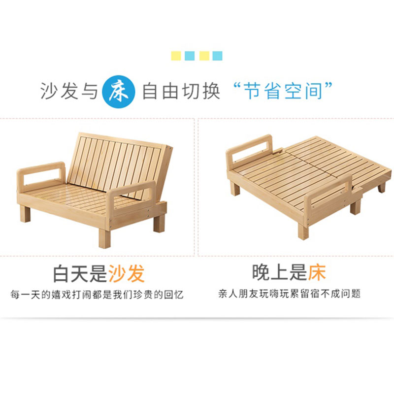 Solid wood sofa bed foldable dual-purpose bed multifunctional living room study balcony sofa small apartment single double bed