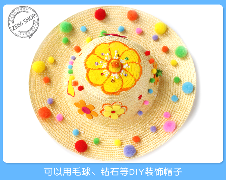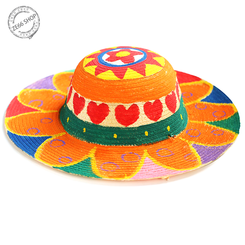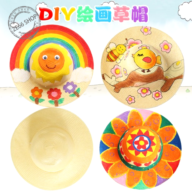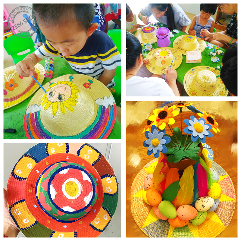 Straw hat DIY painting hat big brim hat Easter decoration blank hat children's color painting making baby handmade