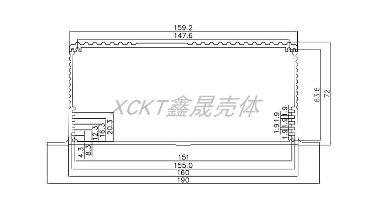 190 * 71 aluminium extruded material housing aluminium alloy housing aluminium case Two type (with ear) aluminium shell circuit board housing